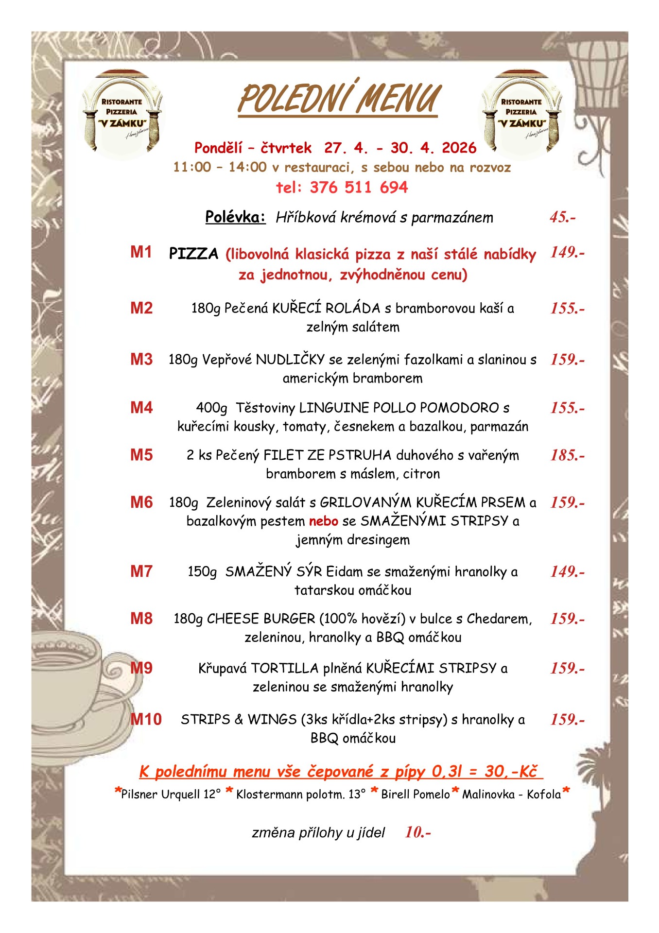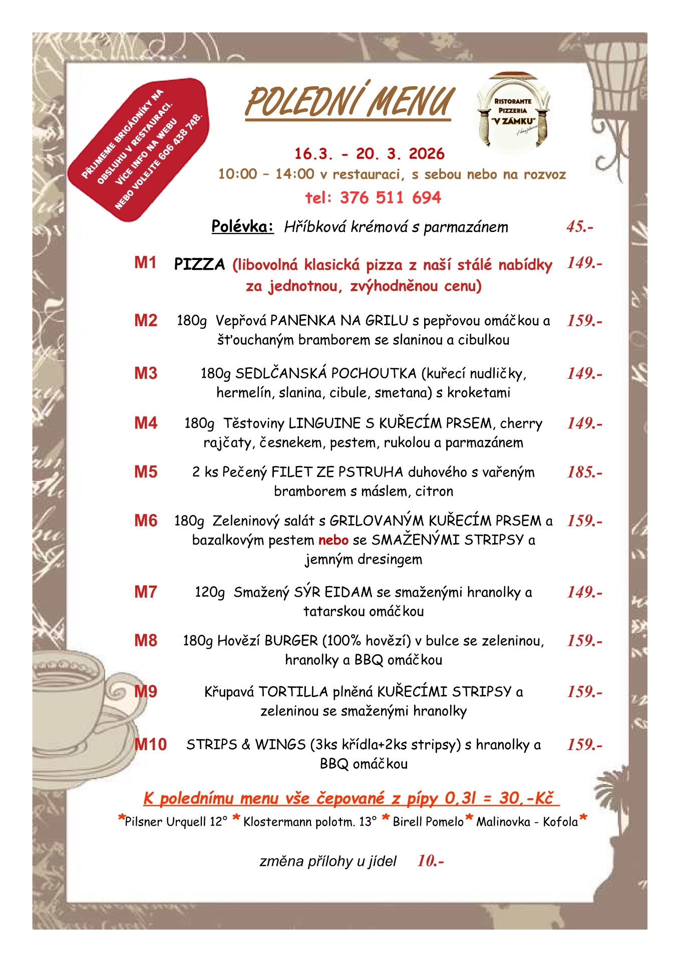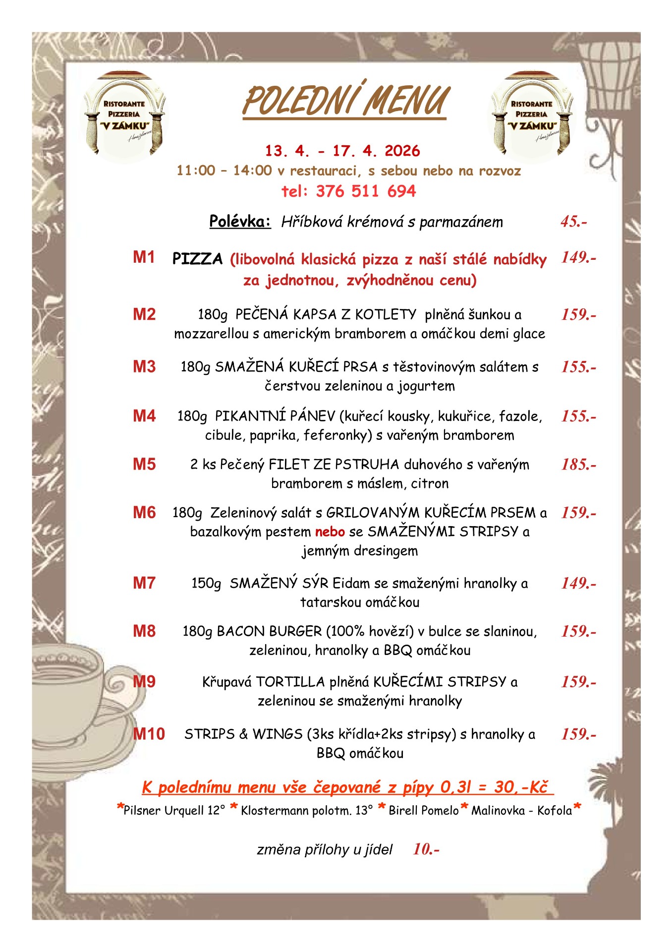 Rozvoz pizzy a jídel na tel: 376511694